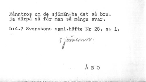 //// Månntros om de sjömän-ha^det så bra, ja därpå så får man så många svar. //// 5:4.? Svenssons saml.häfte Nr 28. s*. 1. //// ÅBO //// Irn ////