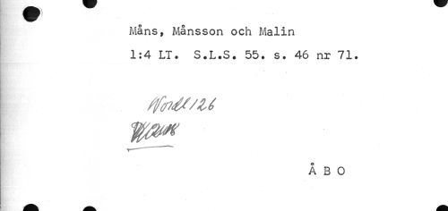 //// Måns, Månsson och Malin //// 1:4 LT# S*L.S# 55. s. 46 nr 71. //// » //// ff^/U //// j^swr //// ÅBO ////