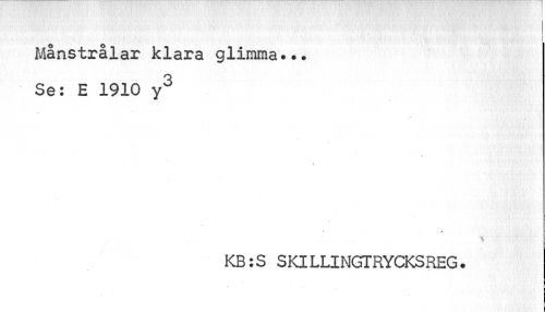 //// Månstrålar klara glimma... Se: E 1910 y3 //// i //// KB:S SKILLINGTRYCKSREG. ////