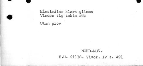 //// Månstrålar klara glimma ^ Vinden sig sakta rör //// Utan prov //// NORD. ms. E.U. 21118. Visor. IV s. 491 //// sr ////