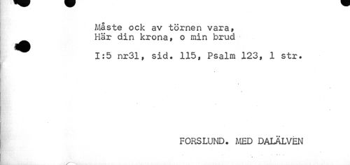 //// Måste ock av törnen vara, Här din krona, o min brud //// //// /1:5 nr31, sid. 115, Psalm 123, 1 str. //// t //// % //// FORSLUND. MED DALÄLVEN //// - — — * 4 — ////