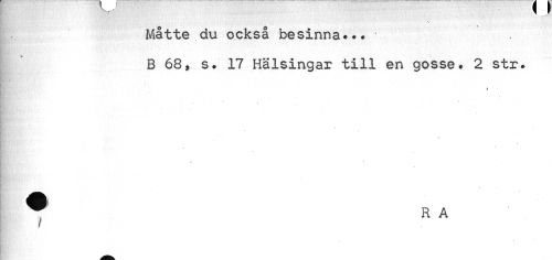 //// Måtte du också besinna*.? //// B 68, s• 17 Hälsingar till en gosse. 2 str. //// //// /^ RA' //// I ////