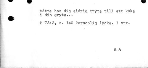 //// Måtte hos dig aldrig tryta till att koka ^ i din gryta... //// B 73:3, s. 140 Personlig lycka. 1 str. //// //// /R A ////