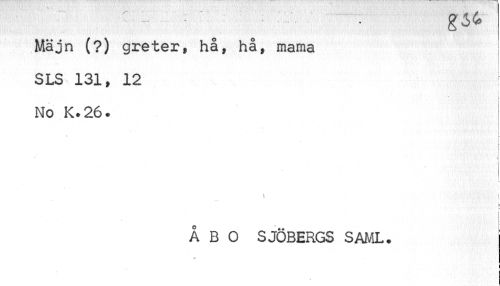 //// Majn (?) greter» hå, hå, marna SLS 131, 12 //// % //// No K.26. //// I //// t | ÅBO SJÖBERGS SAML. //// i ////