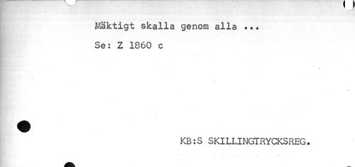 //// v......,.., //// Mäktigt skalla genom alla . •. //// ¦ //// Se: Z 1860 c //// t //// > //// KB:S SKILLINGTRYCKSREG. //// ----- „ + ////
