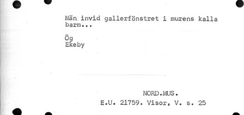 //// Män invid gallerfönstret i murens kalla barrru.. //// Ög //// Eke by //// i # //// ••ém - — »- - - —— -M.- 4*4.. ilani ' r- mil ii ilMfn»! . — . . . //// NORD.MUS. E.U. 21759. Visor» V. s. 25 ////