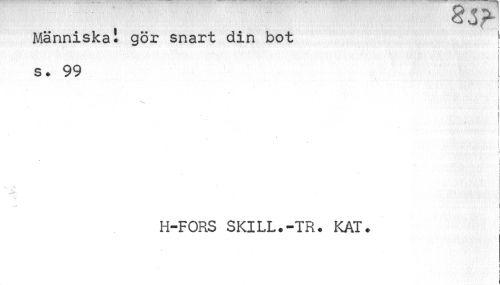 //// Människa! gör snart din bot //// r j //// s. 99 //// I //// * //// > //// I i //// l « //// i //// : //// V. "M //// H-FORS SKILL.-TR. KAT. ////