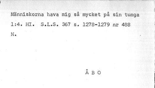 //// Människorna hava mig så mycket på sin tunga //// 1:4. Hl. S.L.S. 367 s. 1278-1279 nr 488 [ //// _ //// N. //// i ¦ //// — //// f //// ÅBO //// i ////