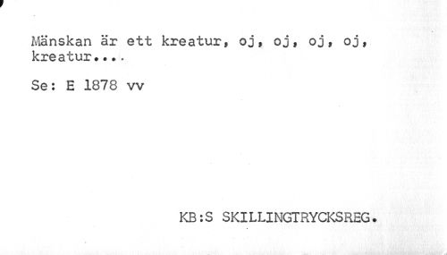 //// Mänskan är ett kreatur, oj, oj, oj, oj, //// Icjto Q^cur * • * ? //// Se: E 1878 vv //// KB: S SKILLINGTRYCKSREG. ////