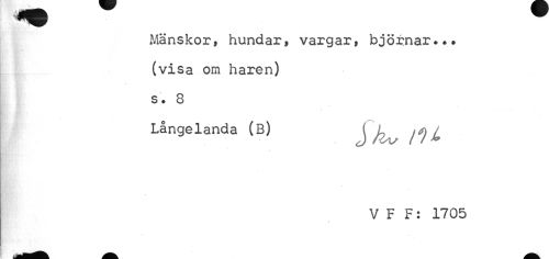 //// Mänskor, hundar, vargar, björnar• (visa om haren) s • 8 //// Långelanda (B) j / ^ ^ //// a» //// V F F: 1705 ////