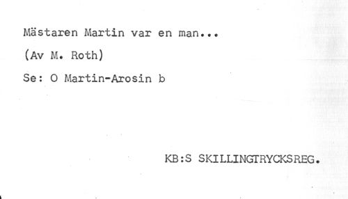 //// Mästaren Martin var en man... //// (Av M. Roth) //// Se: 0 Martin-Arosin b //// KB:S SKILLINGTRYCKSREG. //// 4 ////