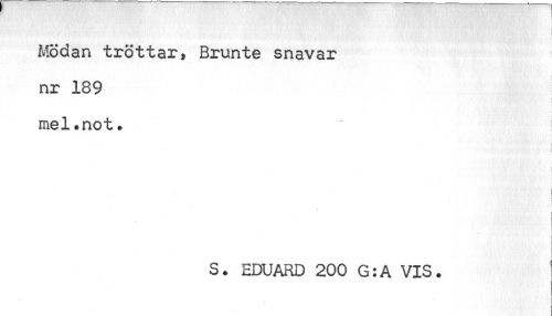 //// i //// Mödan tröttar, Brunte snavar nr 189 //// mel.not» ! //// i //// i //// •-V •• ' i //// I //// I //// 1 //// ! //// S. EDUARD 200 G:A VIS. ////