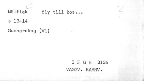 //// u- i //// Mölflak fly till kos... //// i //// ; //// s 13-14 //// Gunnarskog (VI) //// i » //// \ i //// i //// j //// i //// f //// i //// I F G H 3136 VAGGV. BARNV. ////