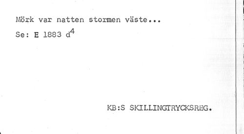 //// = i //// Mörk var natten stormen väste... //// i //// Se: E 1883 d4 //// i //// : | //// i "iV.Vun | //// ¦ y. föll //// k i //// KB:S SKILLINGTRYCKSREG. ////
