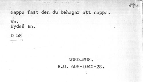 //// Nappa fast den du behagar att nappa. //// y • : //// Vb. //// Bydeå sn. I //// l //// D 58 //// i I //// i //// NORD. MUS. E.U. 608-1040-28. //// i //// i ////