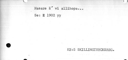 //// --T' //// Nasare ä" vi allihopa.•• Se: E 1902 yy //// I //// > //// KB:S SKILLINGTRYCKSREG. //// fe t " * * ; " * 3 ////