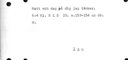 //// Natt och dag på dig jag tänker. //// 6:4 Ki. S L S 23. s.153-154 nr 68. N. //// * //// ÅBO ////