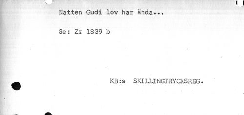 //// Natten Gudi lov har ända.*. //// Se: Zz 1839 b //// » • //// ^ KB:s SKILLINGTRYCKSREG. //// A ////