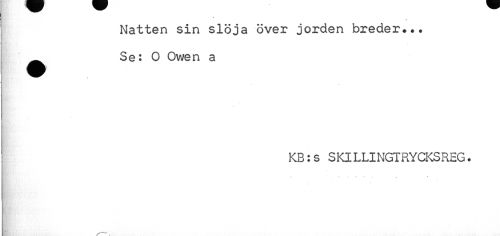 //// * //// Natten sin slöja över jorden breder... Se: O Owen a //// KB:s SKILLINGTRYCKSREG. //// il» ~ * » / „ • t ////