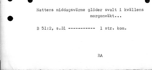 //// Nattens middagsvärme glöder svalt i kvällens //// •morgonväkt•.• //// B 51:2, s.31------•----- 1 str. kom. //// ¦ //// RA //// ¦ //// _ //// HBBfitvv ¦. ¦¦" { //// Bn-V , * ' r '1 v //// b i (k iv. • ;••'.' . v //// ^¦Vr ---- -ji. ^ — - --- --- - — ---. J. . - . _ __ „____. i.jrw^. A. . _ ____ ____ _ _ . ^ _ .. . . __ _ _ ___ ____ _____ ___ . __ ___ ////