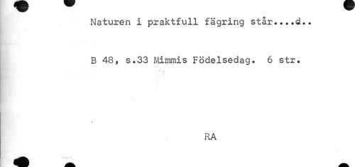 //// Naturen i praktfull fägring står....d.. //// B 48, s.33 Mimmis Födelsedag. 6 str. //// « //// RA ////