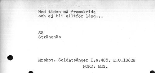 //// • Si * »y?»^ " TÄW" " « - , - ... //// ¦ • • . ... //// h-i ' ~ v- //// ¦'" • •' • ~ — —. - * * //// Ned tiden må framskrida och ej bli alltför lång... //// SÖ //// Strängnäs //// . • * //// ® Mrskpt. Soldatsånger I,s.485, E.U.18628 //// NORD. MUS. ////
