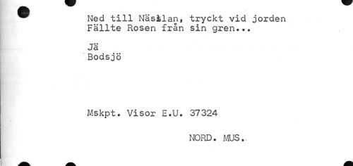 //// ® Ned till Näsilan, tryckt vid jorden //// Fällte Rosen från sin gren... //// Jä //// Bodsjö //// Mskpt. Visor E.U. 37324 //// NORD. MUS.. ////