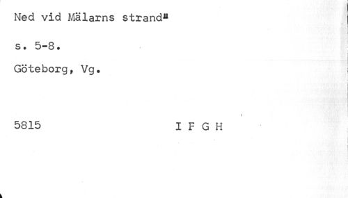 //// I //// Ned vid Målarns strand0 s • 5—8 # //// i i i //// Göteborg, Vg. //// i i //// 5815 I F G H ////