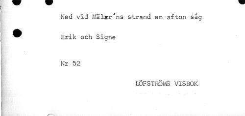 //// Ned vid Mälarens strand en afton såg ^ Erik och Signe //// Nr 52 //// LÖFSTRÖMS VISBOK //// . • % t. ////