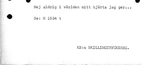 //// Nej aldrig i världen mitt hjärta jag ger... " Se: N 1834 t //// K- //// wm //// KB:s SKILLINGTRYCKSREG. ////