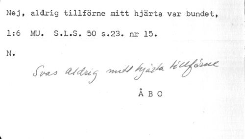 //// Nej, aldrig tillförne mitt hjärta var bundet, //// i I i //// I //// 1:6 MU. S.L.S. 50 s.23. nr 15. N. //// ÅBO ////