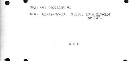 //// Nej, det omöjligt är //// 4:4. GB-KB-NV-TJ. S.L.S. 10 s.213-214 //// nr 137. //// ÅBO //// * ////