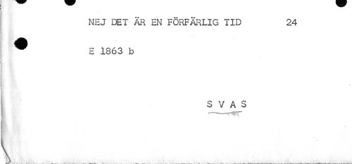 //// NEJ DET ÄR EN FÖRFÄRLIG TID 24 //// / < //// j^^H B //// ^ E 1863 b //// S V A S //// i ////