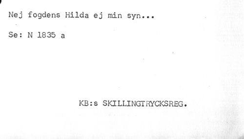 //// Nej fogdens Hilda ej min syn... //// c //// Se: N 1835 a //// \ //// KB:s S Kl L LI NGT RYCKS REG. ////