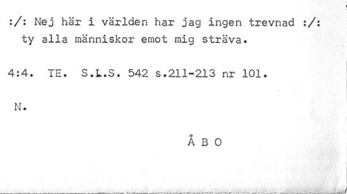 //// r //// :/: Nej här i världen har jag ingen trevnad :/: //// r //// ty alla människor emot mig sträva. 4:4. TE. S.L.S. 542 s.211-213 nr 101. N. //// i //// ÅBO //// ! i //// '4'.läkt //// ___„ ____ ____*_____^____------,--V—^---—- ---•• ------'-- ////