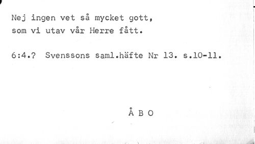 //// m //// i //// I //// Nej ingen vet så mycket gott, //// i //// som vi utav vår Herre fått. //// 6:4.? Svenssons saml.häfte Nr 13. s.10-11• //// i //// : //// . i //// I i //// ÅBO //// i j ////
