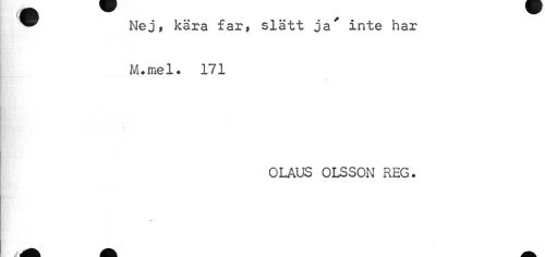 //// f fl ^ //// ™ Nej, kära far, slätt ja' inte har //// M#mel. 171 //// OLAUS OLSSON REG. //// fe åk Ik. ////