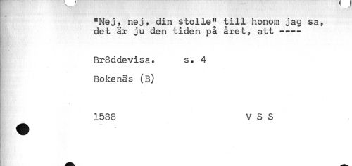 //// «k //// "Nej, nej, din stolle^1 till honom jag sa, det är ju den tiden på året, att--- //// BrSddevisa. s. 4 Bokenäs (B) //// 1588 V S S ////