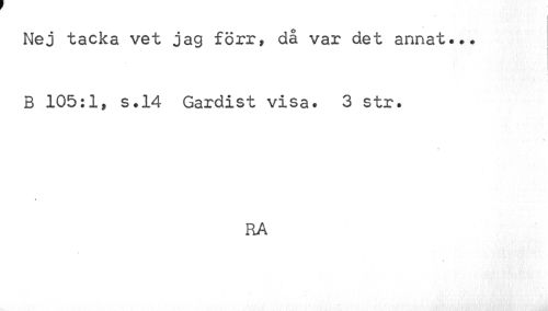 //// * //// Nej tacka vet jag förr, då var det annat... //// B 105:1, s.14 Gardist visa* 3 str. //// » //// RA ////