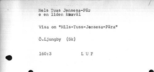 //// ....... //// /Nels Tuas Jensesa-Pär e en liden knaväl //// w' //// « //// Visa om "Nils-Tuss-Jensesa-Pära" Ö.Ljungby (Sk) //// 160:3 L U F ////