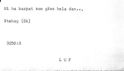 //// Ni ha karpat som gäss hela dan... Stehag (Sk) //// 3258:3 //// < //// L U F ////