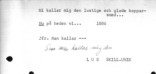 //// Ni kallar mig den lustige och glade kopparsmed. .. //// Nu på heden vi... 1886 Jfr. Man kallar --- //// *# L U B SKILL.UNIK //// # ////