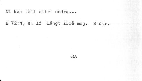//// Ni kan fäll allri undra.?? B 72:4, s. 15 Långt ifrå mej. 8 str. //// RA ////
