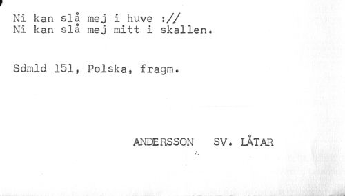 //// Ni kan slå mej i huve :// Ni kan slå mej mitt i skallen. //// Sdmld 151, Polska, fragm. //// ANDERSSON SV. LÅTAR //// < ////