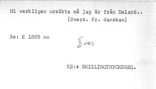 //// Ni verkligen ursäkta må jag är från Dalarö.. //// (övers. fr. danskan) //// Se: E 1885 nn //// J iMo //// KB:s SKILLINGTRYCKSREG. //// * ////
