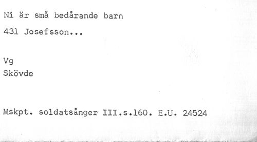 //// * //// Ni är små bedårande barn 431 Josefsson... //// Vg //// Skövde //// Mskpt. soldatsånger III.s.160. E.U. 24524 ////