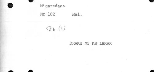 //// 9 Nigaredans //// Nr 182 Mel. //// Oé (V //// J //// « //// DRAKE MS KB LEKAR //// • 4 //// t //// * ////