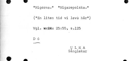 //// "Nigorna.11 "Nigarepolska *11 ("En liten tid vi leva här") //// i //// Vgl. wx24x 25:55, s.125 //// « //// D 6 //// U LM A Sånglekar ////