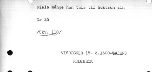 //// Niels Wånge han tala til hustrun sin Nr 35 //// /Skv .JjlO //// /Q VISBÖCKER 15- o.1600-EALENS //// RUDE BECK ////