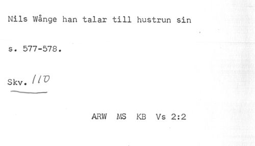 //// Nils Wånge han talar till hustrun sin //// •v //// s. 577-578. Skv. UV //// ARW MS KB Vs 2:2 ////